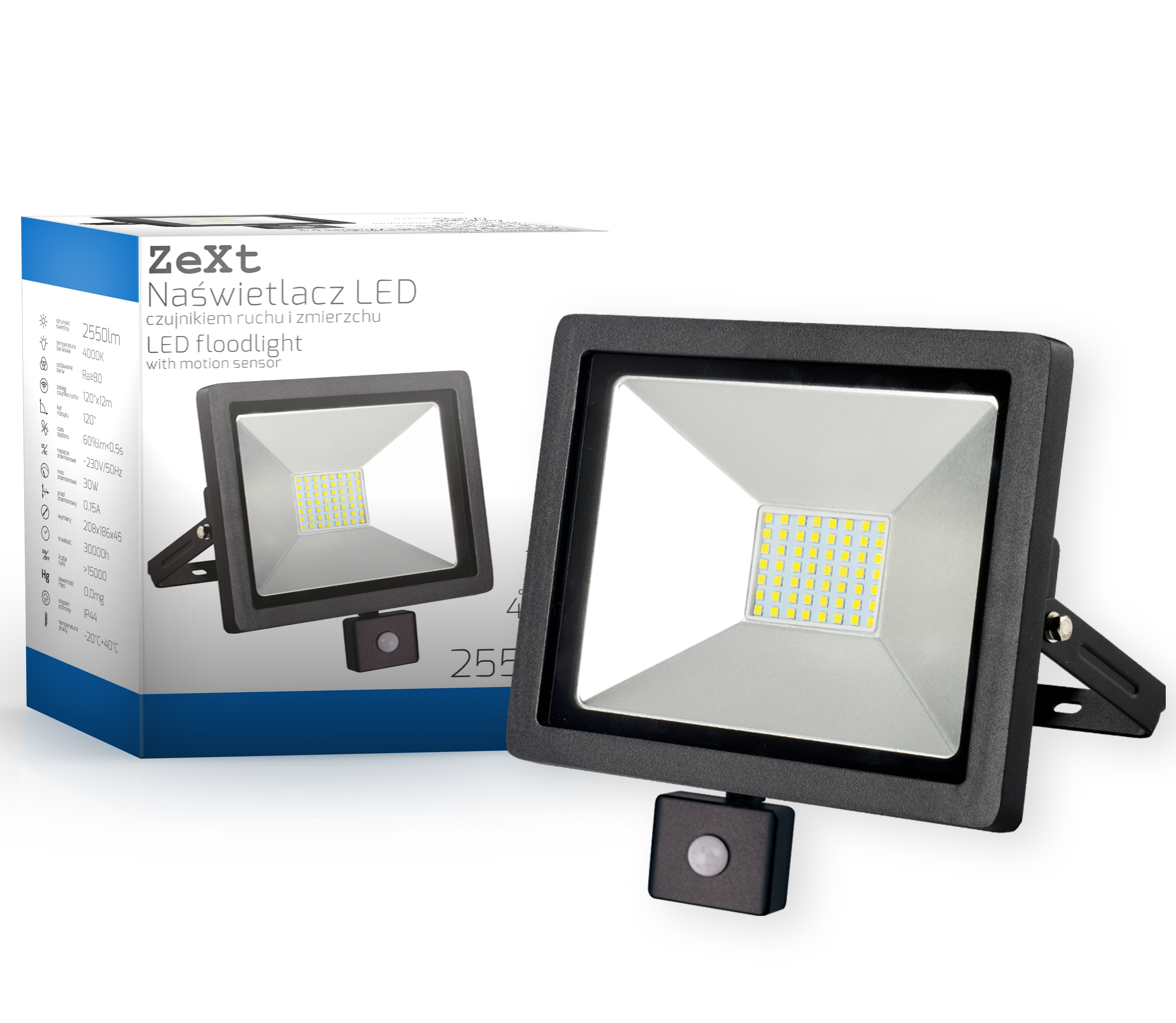 Naświetlacze LED z czujnikiem ruchu firmy ZEXT są doskonałym wyborem dla tych, którzy potrzebują mocnego profesjonalnego oświetlenia. Te energooszczędne oprawy doskonale sprawdzą się zarówno wewnątrz pomieszczeń, jak i do oświetlenia zewnętrznego (zamontowane pod osłoną - IP44). Estetyczny wygląd produktu pozwala na montaż dokładnie tam, gdzie źródło światła najlepiej oświetli przestrzeń, bez potrzeby jego ukrywania. Smukła obudowa, symetrycznie rozłożone diody LED, konstrukcja zapewniająca wygodną instalację naświetlacza to kolejne z licznych zalet tych opraw. Dla większego komfortu użytkowania dostępne są różne warianty mocy oraz barwy światła. Dodatkowe funkcjonalności daje czujnik ruchu (PIR). Zastosowany czujnik pozwala na regulację w aż trzech zakresach: wartości progowej natężenia oświetlenia (LUX), czasu podtrzymania załączenia (TIME) oraz czułości czujnika (SENS). Pozwala to wygodnie dopasować zasady pracy oprawy do potrzeb użytkownika, i tym samym lepiej oszczędzać energię.