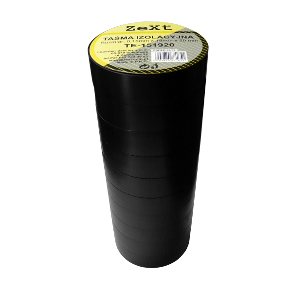 Każdy, kto wykonuje prace instalacyjne, wie, że dobrej jakości taśma izolacyjna do izolowania przewodów elektrycznych oraz innych obiektów przewodzących prąd elektryczny to konieczność. Taśmy proponowane przez firmę ZeXt wykonano z plastyfikowanego polichlorku winylu (PVC) pokrytego jednostronnie warstwą kleju kauczukowego. Zastosowanie najlepszych materiałów sprawia, że taśma ZeXt jest bardzo dobrze przylepna, elastyczna oraz ma doskonałe właściwości uszczelniające i izolacyjne (napięcie przebicia 40KV/mm). W ofercie dostępne są taśmy o szerokości 19mm, grubości 0,13mm oraz długości 10 lub 20 metrów. Dodatkowo dla wygody użytkownika zestawy występują w dwóch wersjach kolorystycznych (czerń i miks kolorów).